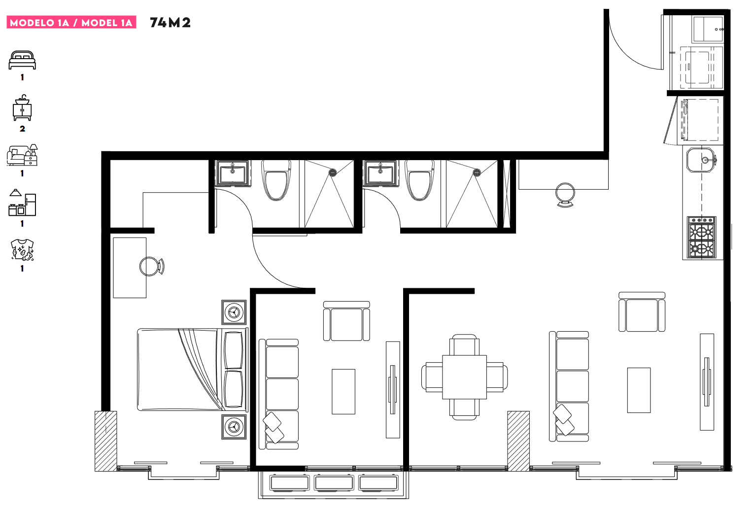 The Model C & D features an efficient layout that promotes everyday comfort. Natural light and its contemporary style create a welcoming atmosphere, ideal for those seeking functionality in a premium location.