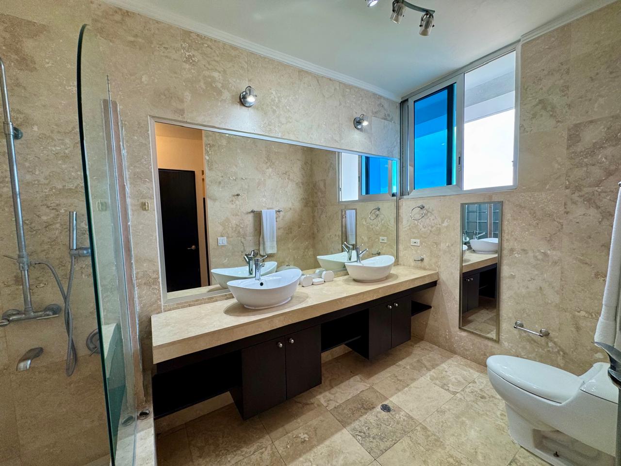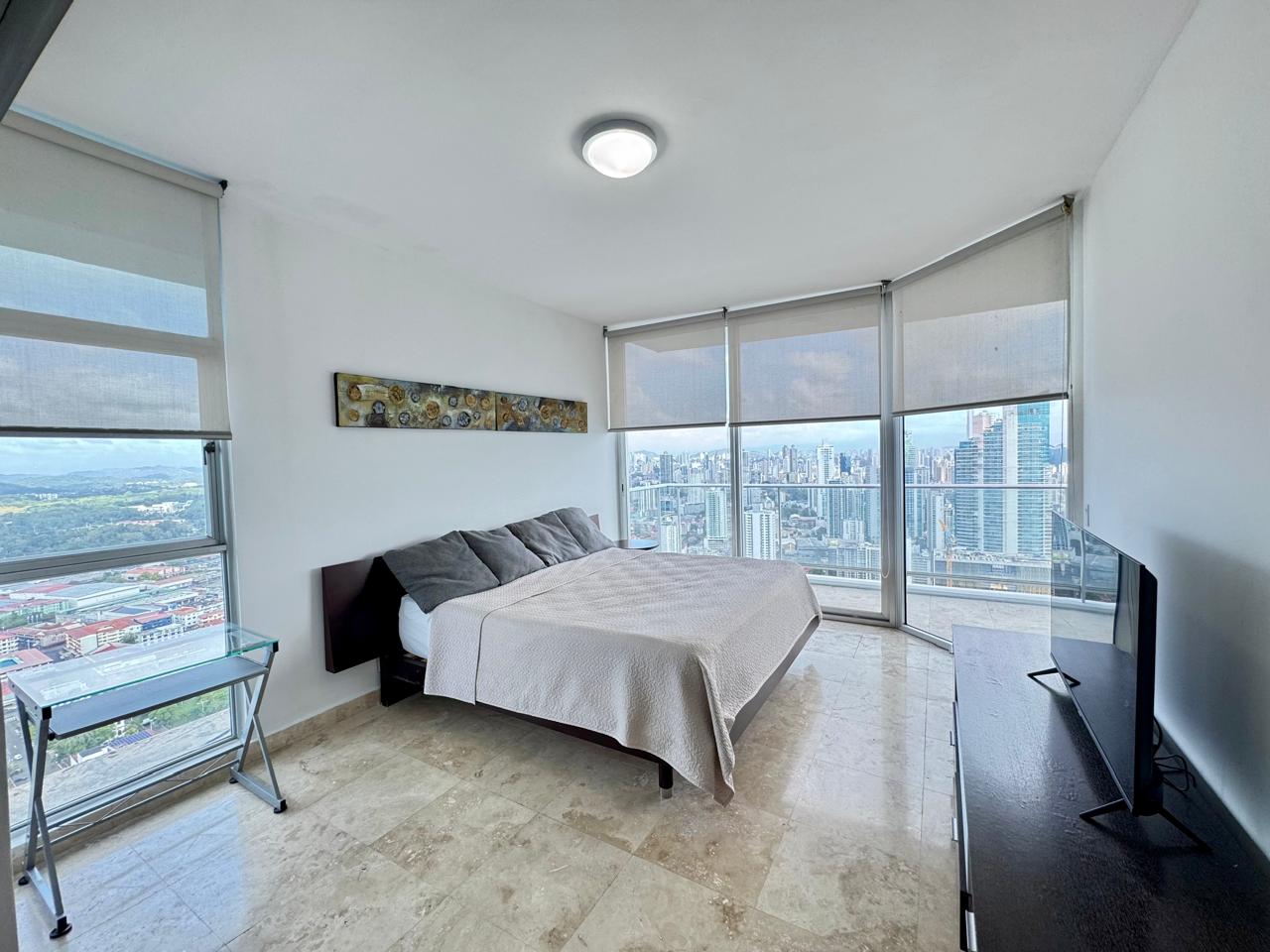 The moment you arrive at Destiny the spectacular view of Panama City skyline welcomes you. This bay front area, with a view to the colonial city of Casco Viejo and the cosmopolitan city of Panama, is one of the quickest growing areas. With 24 hour security service, valet parking, business center and conference room. While you will find luxurious amenities at Destiny that will exceed your expectations, enjoy in any of the two beautiful social areas, with a stunning view to the Panama bay, Causeway Island and City. Located on the 49th floor you can find the event rooms, sauna and the fitness center. On the 5th floor is a spacious squash court, racquetball and a half basket ball court. The pool, sun deck, BBQ area and the entertainment deck is located on the 51th floor with a panoramic view. This 2 bedroom apartment has a spacious balcony facing the Panama City and a panoramic view. The kitchen includes all the appliances like stove, refrigerator, microwave and all the utensils you may need if you are a great cook. The master bedroom and second bedroom are comfortable,walk-in closet. Its central location offers, easy access to corredor sur, where you can have a fast access to the airport and Punta Pacifica. Close to the apartment you are able to find shopping mall, casinos, financial center, fine dining, vibrant nightlife and more, the activities available to you are nearly endless. For business or holiday travel, for short or long term rental - make Panama Casa your choice. Our impeccable vacation properties and executive apartments are sure to make you feel comfortable and our helpful staff will make you feel welcomed in this beautiful city.